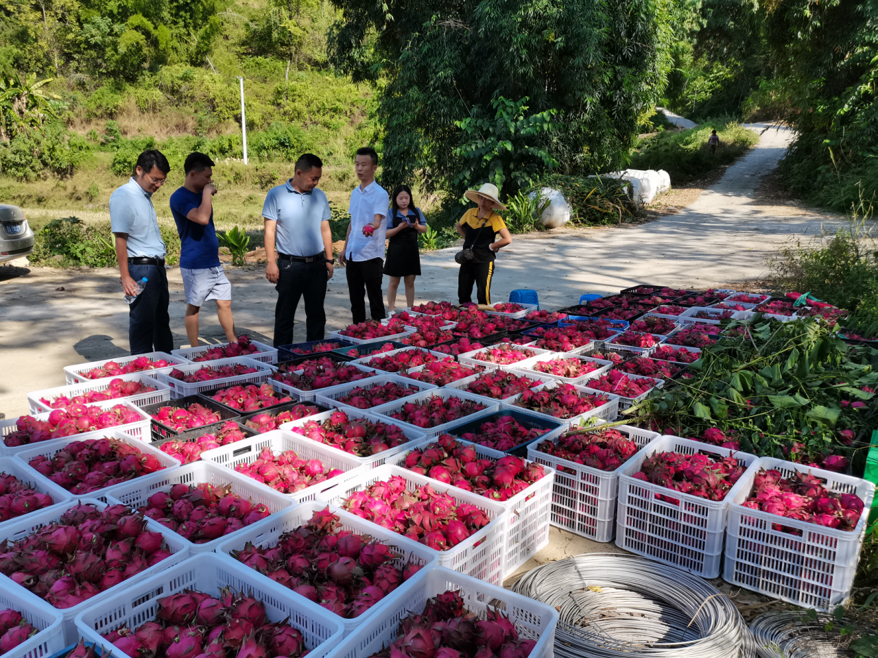 ( 广东省粤黔协作工作队黔南工作组罗甸小组到火龙果基地调研。)