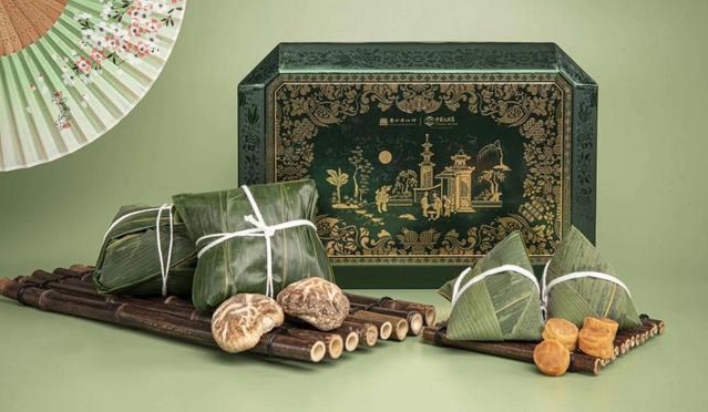 据了解,本期中国大酒店推出的端午礼盒之一【粤色中国端午礼盒】,其包装盒灵感也正是源于广州博物馆馆藏国家二级文物--清·黑漆描金开窗庭院人物图缝纫盒,寓意福气满门,吉祥如意,团圆美满。包装蜡纸上则借鉴了广州博物馆馆藏“龙舟竞渡”通草画的元素。