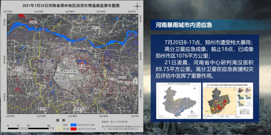 ▲图为2021年7月25日河南郑州遭遇特大暴雨,高分三号卫星的洪涝灾情遥感监测图,显示了特大暴雨造成的城市受淹区域,并具体细至街道。