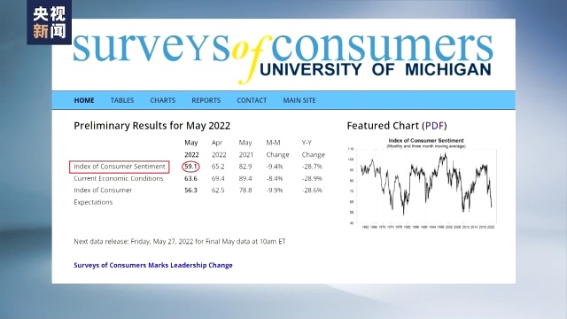 数据还显示,美国消费者对当前经济状况的评估值有所下降,达到自2013年以来最低;36%的消费者认为通货膨胀是当前经济状况下降的主要原因。