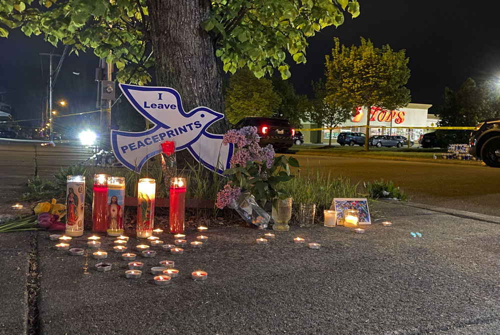 5月15日凌晨,人们在美国纽约州布法罗市的枪击案现场附近摆放蜡烛纪念遇难者。新华社发(张杰摄)
