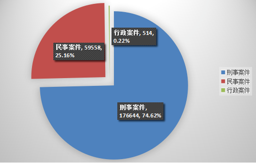 2021年,全省法律援助机构共组织办理法律援助案件236716件,与上年基本持平。其中,办理刑事案件169913件,办理民事案件59558件,办理行政案件514件。