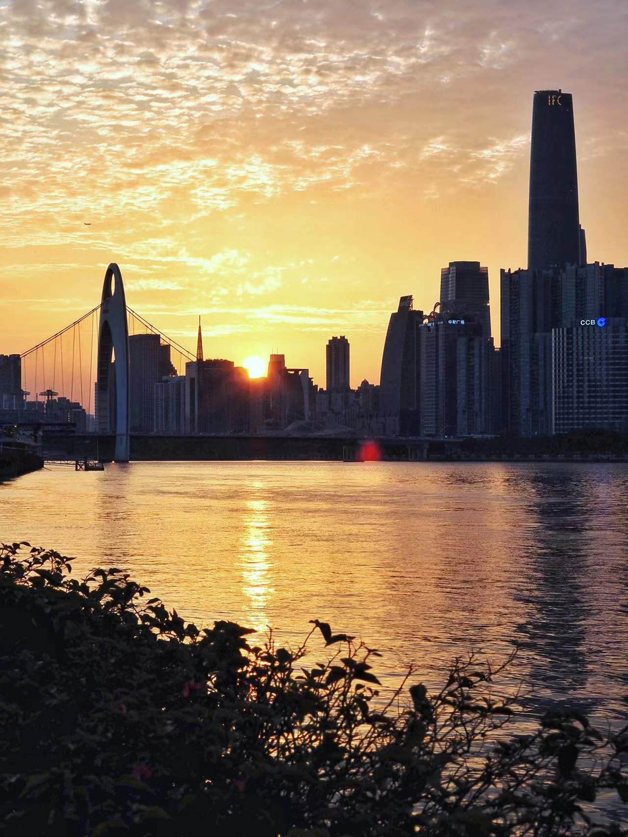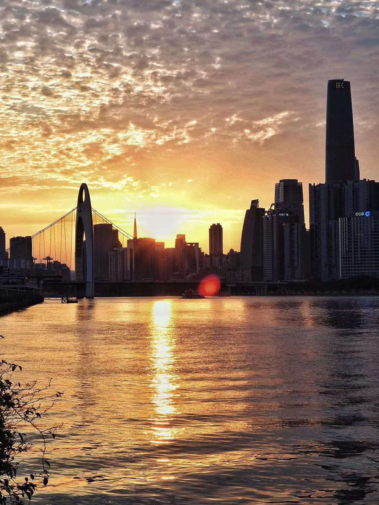 傍晚日落时分的珠江,阅江中路。广州日报·新花城记者刘宇 摄