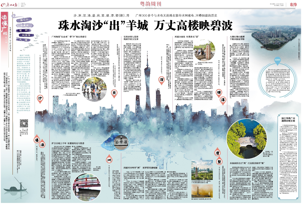 据不完全统计,广州城内可数可知的因水而名的地名多达300余个。一个个与水相关、意思又各有差别的地名,可以让人对广州的历史地理特征一目了然、浮想联翩,生动诠释了水与广州的不解之缘。水孕育了广州,见证了广州变迁,演绎了源远流长的岭南文明。