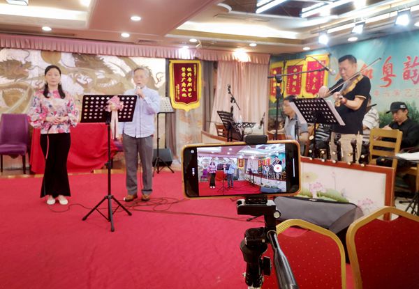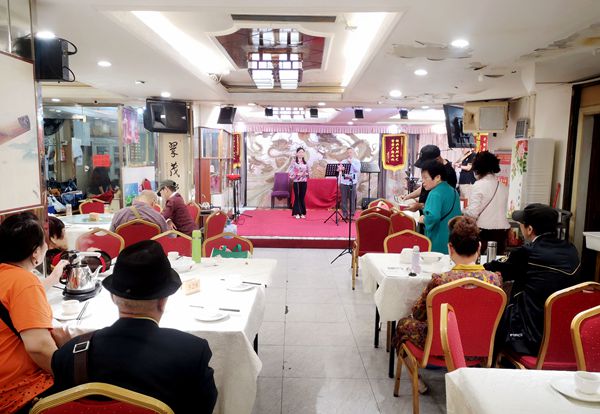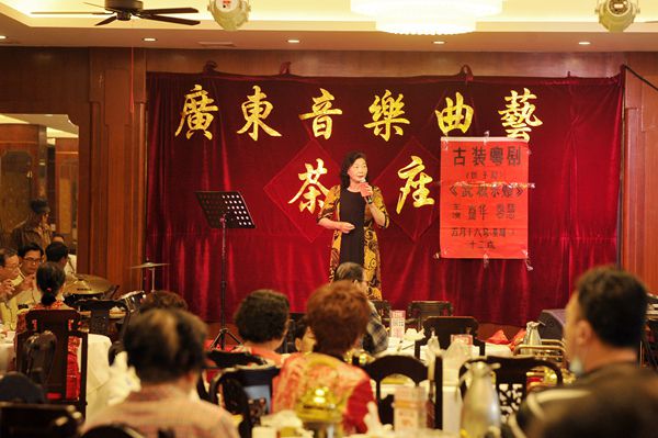 荣华楼上的粤剧茶座,吸引不少老人家前来饮茶听剧。