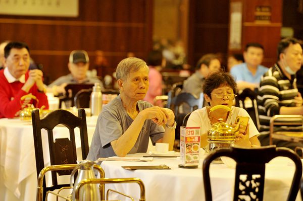 在泮溪酒家有这样一群听众,他们只要下午有空就到此听粤剧,叹茶,一盅两件,度过惬意时光。