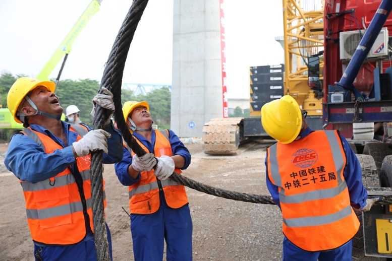 “施工沿途有2.3公里临近既有营业线,距离广珠铁路外侧接触网立柱最小间距只有8.9米,施工安全风险高。”冯碧空说。为此,施工方梳理临近既有营业线等施工重点难点问题,多次与铁路部门召开专项施工研讨会,不断优化施工方案,细化架桥机安拆等专项方案,设立专人专岗盯控安全事项,落实岗前培训人人到位、安全课堂班班讲,筑牢安全生产防线,确保架梁作业顺利进行。