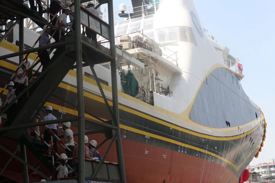 该船于2020年12月18日签订建造合同,2021年7月20日开工建造。此船科技含量高,建造难度大,又受到疫情影响等挑战。参建各方在南方海洋实验室的组织协调下,充分释放智能航行、远程遥控、智能机舱等技术风险,不断攻克建造难关,确保该船按计划下水。该船下水后将聚焦核心设备、智能系统、无人系统的安装调试,计划于今年年底完成海上航行试验并交付使用。