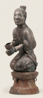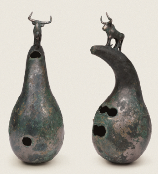执伞男铜俑 立牛曲管铜葫芦笙