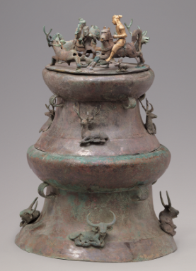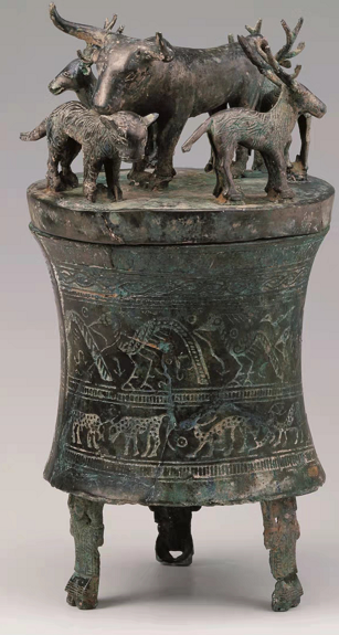 叠鼓形狩猎场面铜贮贝器 虎鹿牛铜贮贝器