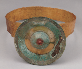 房屋模型铜扣饰 金腰带及圆形镶石铜扣饰
