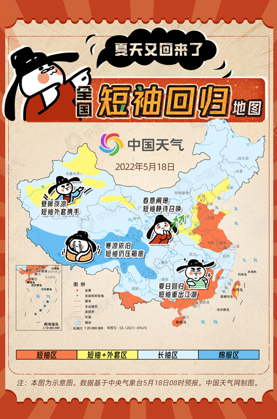 中国天气网温馨提示,正值春夏转换时节,气温起伏不定,请大家该穿长袖穿长袖,该加外套加外套,切不可贪凉耍酷。短袖仍未登场区的小伙伴们请相信,没有一个夏天不会来临,每一件短袖终将会有用武之地!