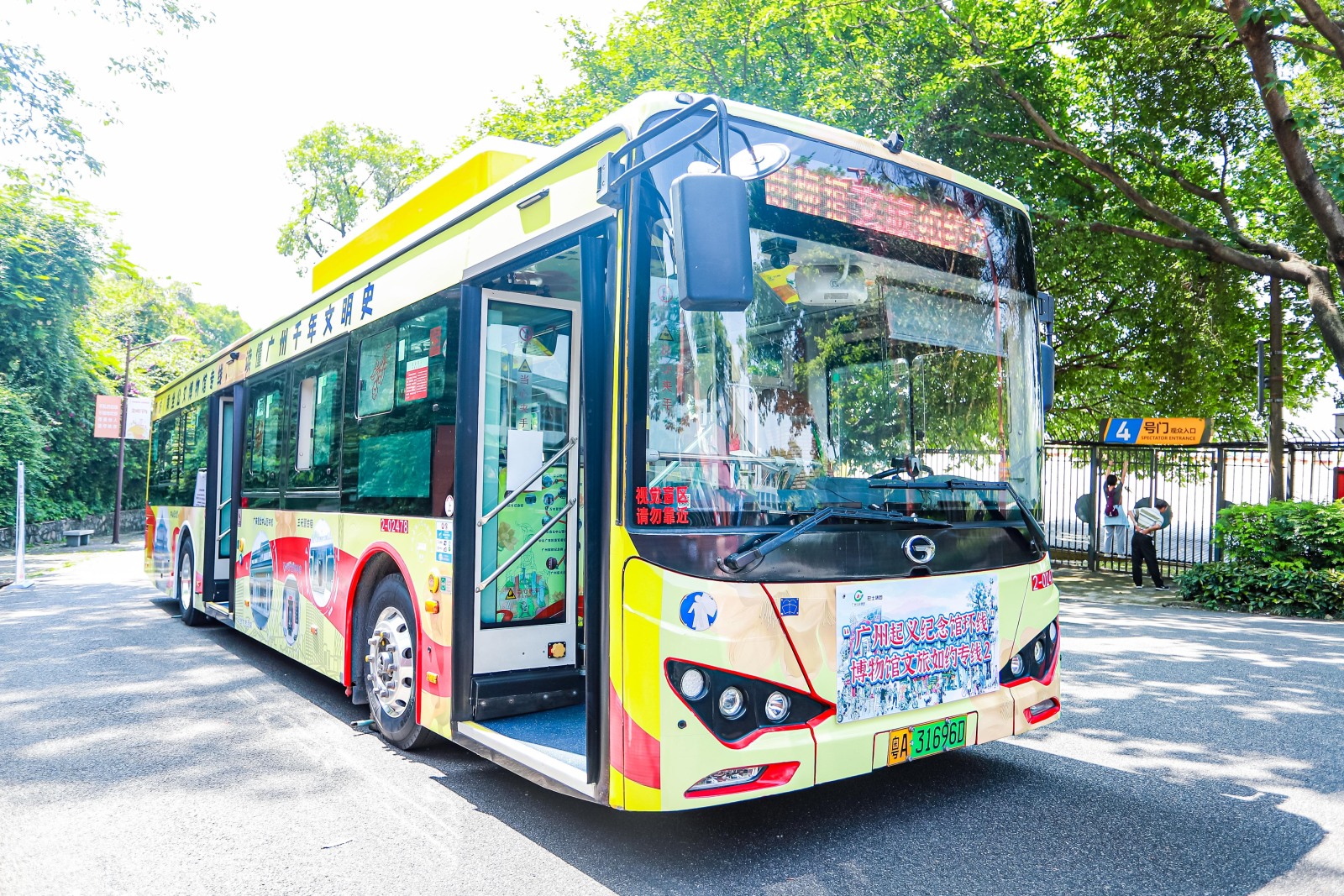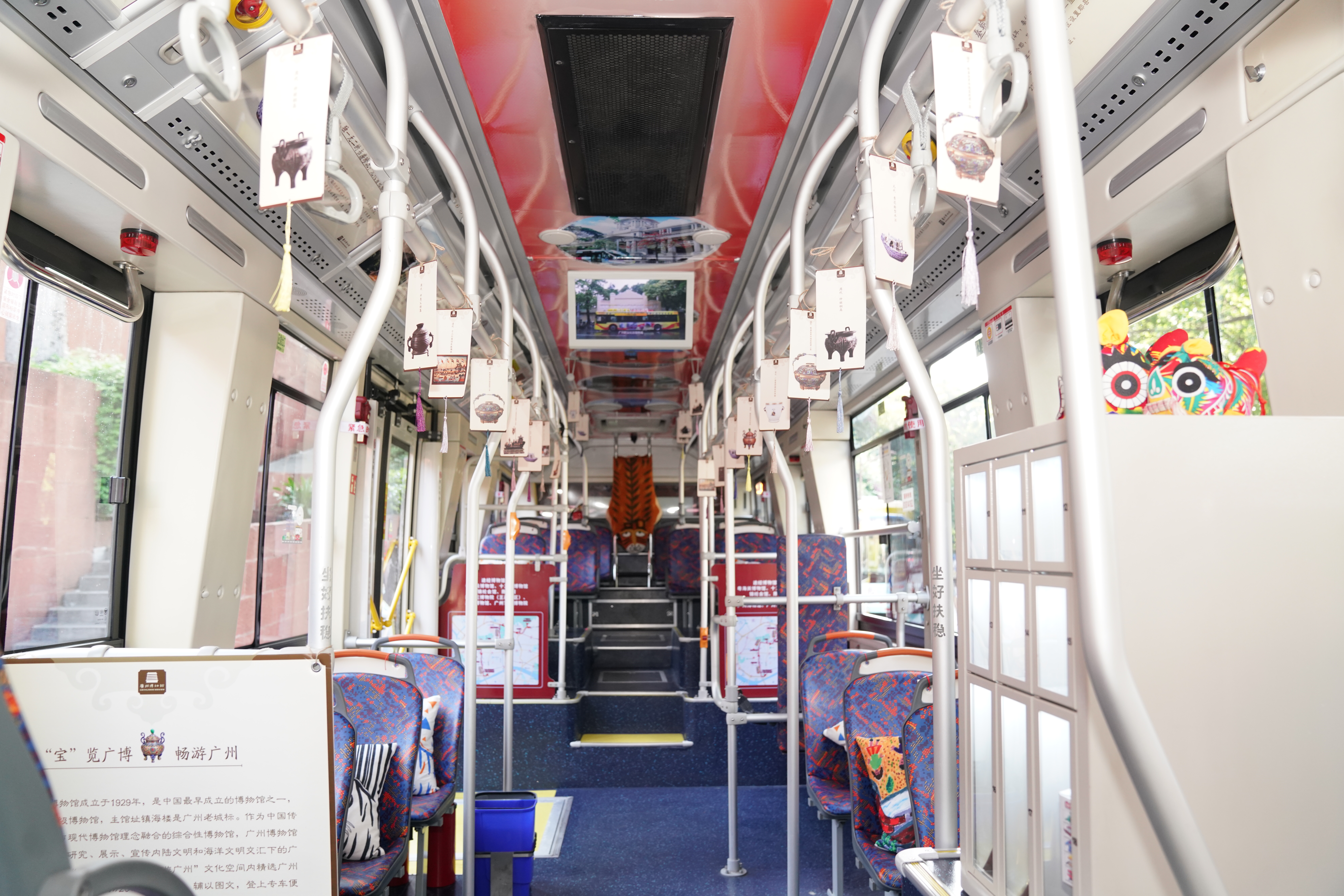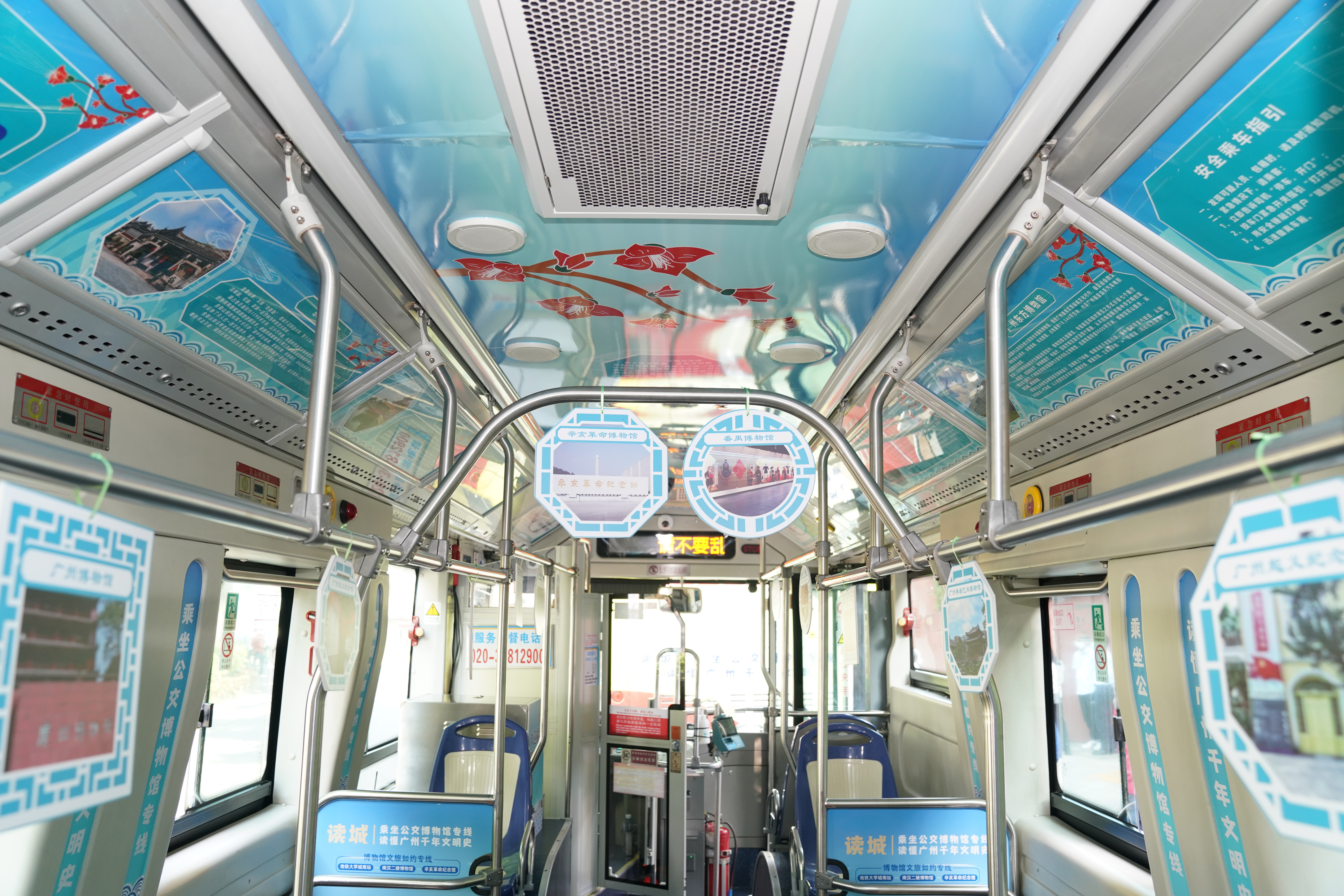 5月18日,广州巴士集团打造的3台主题巴士在广州博物馆门前正式亮相。记者看到,三台主题巴士分别以黄白色、黄红色和蓝白灰色为主色调,车身秀出了途经博物馆的形象照,清晰醒目,车身上方的一行大字“读城|乘坐公交博物馆专线,读懂广州千年文明史”鲜明突出;车厢内的灯箱和看板还为广州博物馆量身订展播出馆藏文物的高清照片和简介,公交车变身“移动博物馆”宣传推广阵地、城市移动文化地标。