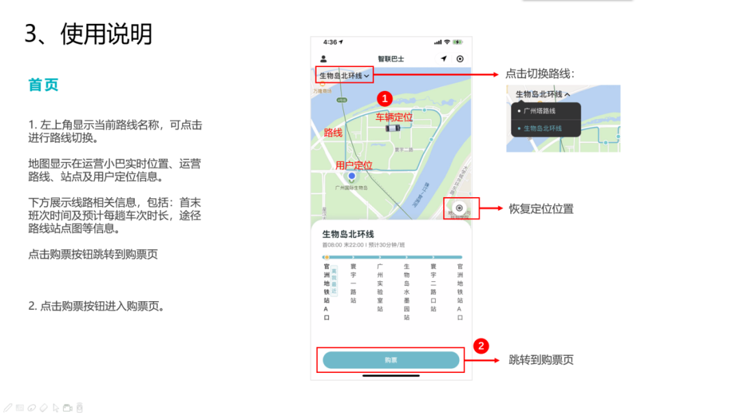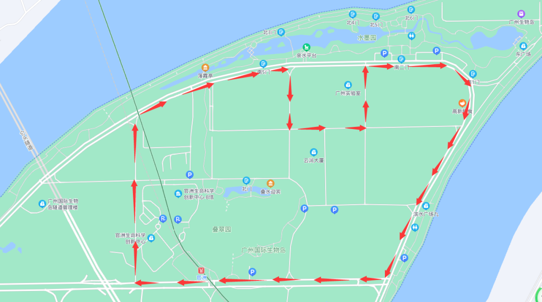 线路站点:地铁官洲站总站、寰宇一路、广州实验室、生物岛水墨园、寰宇二路口、地铁官洲站总站