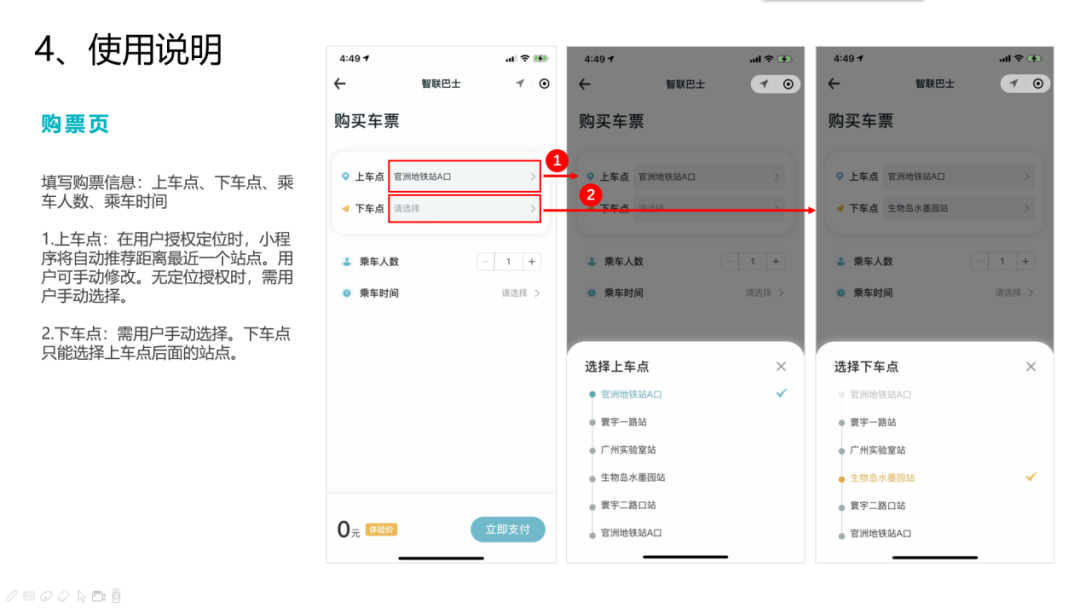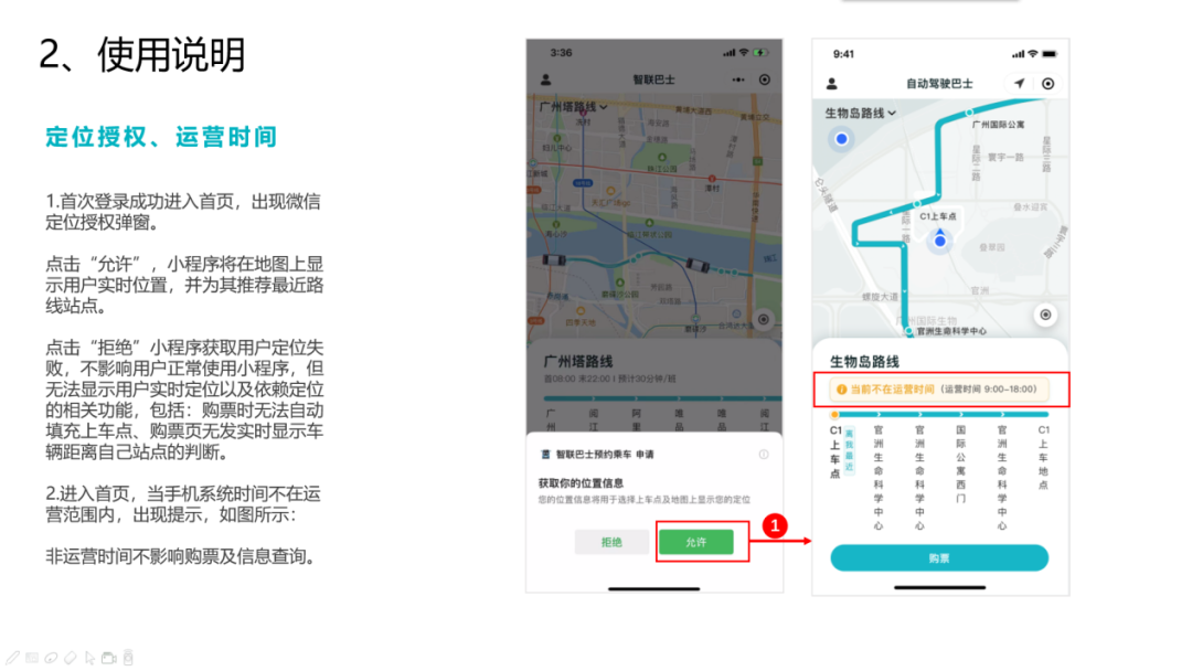 线路站点:广州塔西站、阅江西路西站、阿里巴巴大厦、唯品会总部大厦、阅江西路中站、阅江西路西站、广州塔西站计划发班间隔:全天20分钟一班(12:00-15:00每60分钟一班)自动驾驶便民线公测期间,市民可以通过“智联巴士预约乘车”小程序,免费预约购票,作为载客测试志愿者体验当前自动驾驶最高等级L4级别的自动驾驶服务。