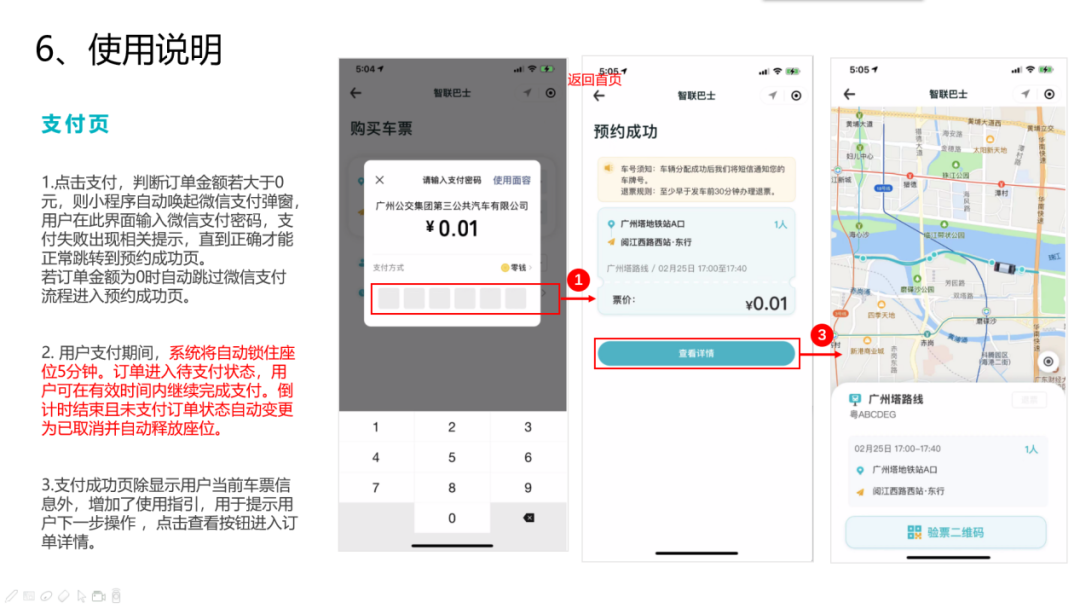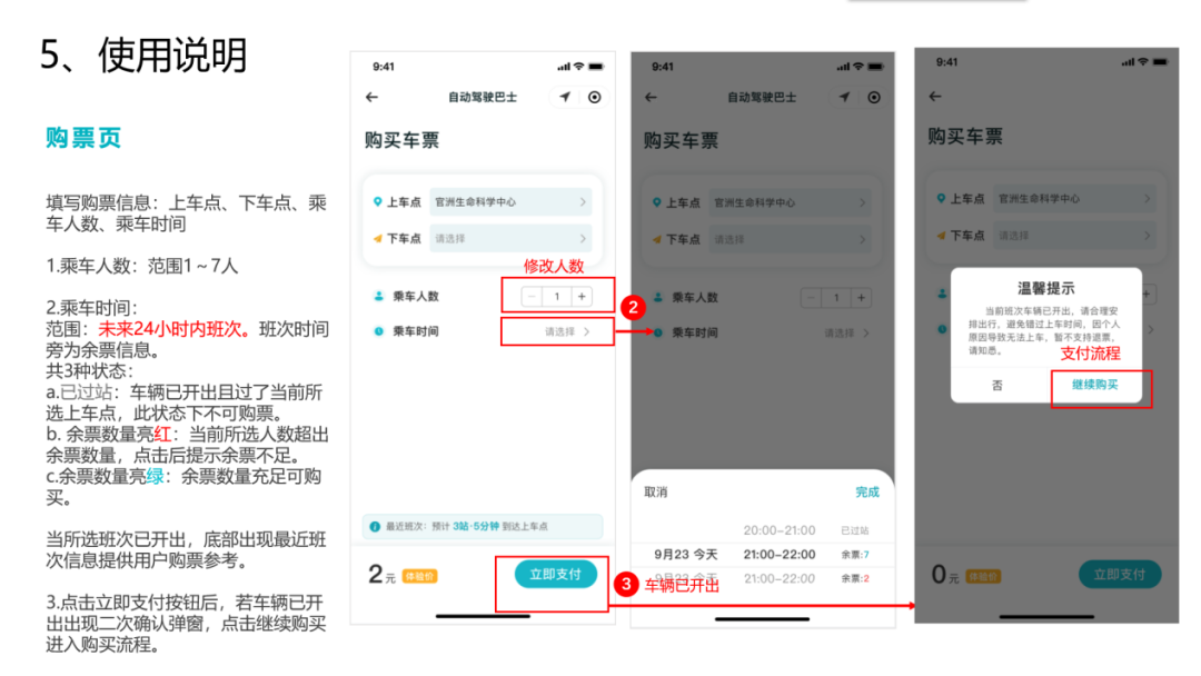 自动驾驶车辆有7个座位,采取“高铁购票”模式,即车上有空余座位乘客才能成功预约,在载客测试期间建议乘客提前预约试乘,避免人员聚集和等候时间过长影响试乘体验。