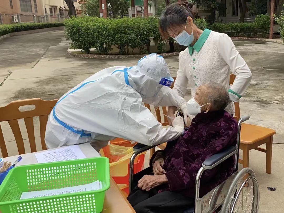 日前,番禺区沙头街疫苗专班联同市桥医院为沙头街敬老院提供上门接种新冠疫苗服务。其中,最高年龄接种者是一位103岁的长者。