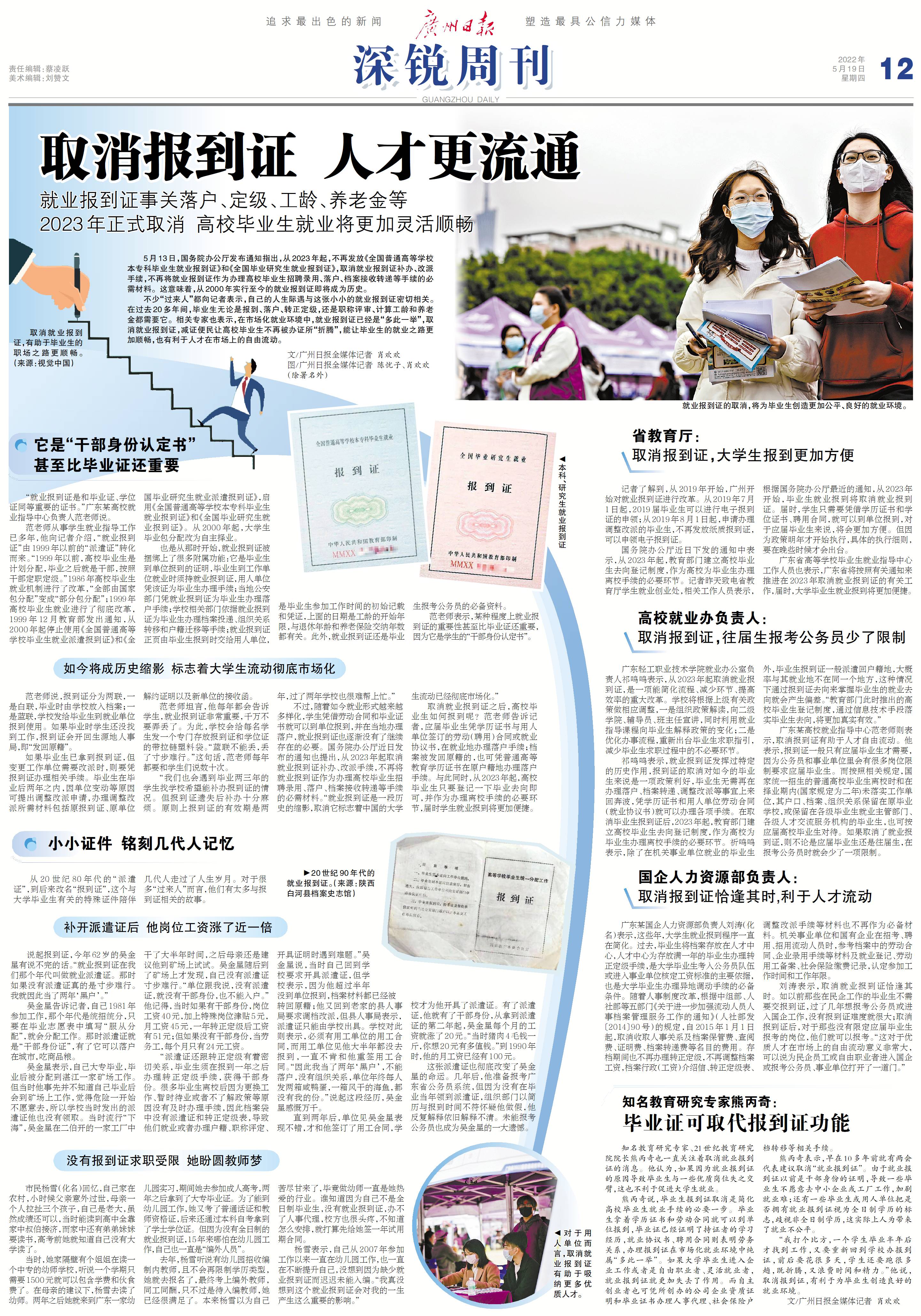 “我打个比方,一个学生毕业半年后才找到工作,又要重新回到学校办报到证,前后要花很多天,学生还要跑很多趟,既折腾,又浪费时间和精力。”他说,取消报到证,有利于为毕业生创造良好的就业环境。