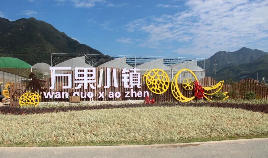 南有万亩果园,北有万亩小镇。万果小镇位于增城区派潭镇白水寨大景区内(派潭镇东洞村),规划总面积1500亩,总投资1亿元。项目以蔬果花产业为核心,融社区概念为一体兼顾参观体验,目标是打造主题蔬果花艺展示园区。自2020年4月项目启动以来,已种植230亩火龙果、130亩柑橘柚、100亩百香果等新优品种,主要上市水果有日本网纹瓜、福联金密甜瓜、福联白玉脆瓜、福联玫龙密瓜、阳光葡萄、黄金百香果等,深受客户好评。