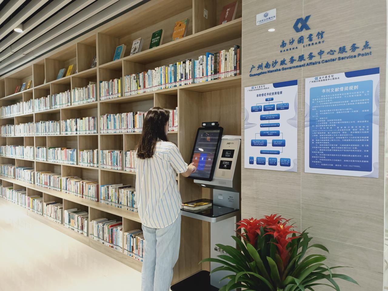 政务服务中心是典型的人群密集、群众需求较旺的场所。今年,南沙区图书馆与区政务中心携手合作,在位于中国铁建环球中心5号楼的南沙区政务服务中心一楼政务大厅内,建成了一个阅读服务点。该场地占地面积80平方米,目前藏书2千余册,服务点内配备自助图书借阅机,为读者提供扫码刷脸办证、自助借还、查询和续借图书等方便快捷借阅服务。初期藏书涵盖了社会科学、法律法规、文艺文学等,所有藏书均已实现“全市通借通还”。该服务点向所有工作人员和办事群众开放,其开放时间与政务大厅的服务时间一致。