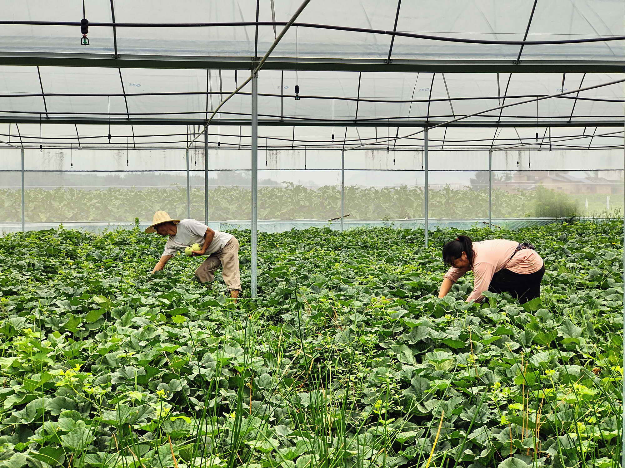 农户陈玉艮种植香瓜已有近十年,但大棚种植还是第一次,她和丈夫正来回穿梭在瓜地里,一边忙着采摘,一边忙着掐蔓,脸上洋溢着丰收的喜悦,更体会到了大棚种植的好处。“下雨的时候淋不到雨,香瓜不容易发病,还提前半个月上市。”