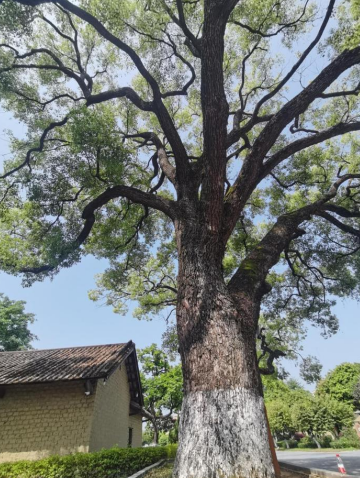 一走进洪秀全故居大门左边,映入眼帘的是一棵128年树龄的樟树。樟树属常绿乔木,全树均有樟脑香气,树木可提制樟脑和提取樟油。因全株散发樟树的特有清香气息,故在民间多称其为香樟。