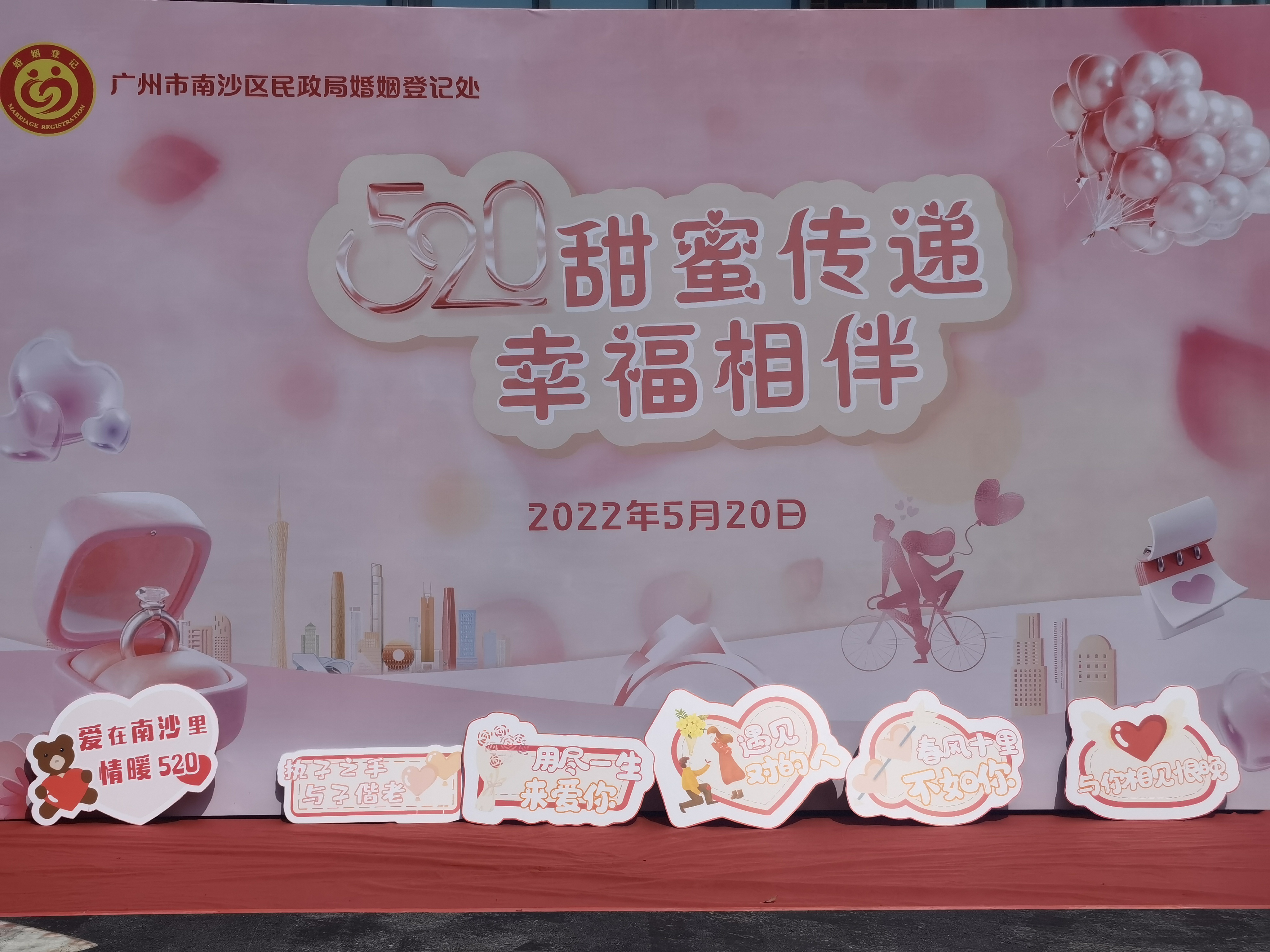 5月20日,广州有近1200对新人选择了在这一天结婚登记,许下浪漫誓言。在全市十一个区婚姻登记处现场,满眼浪漫布景,领证新人在镜头前深情表白。