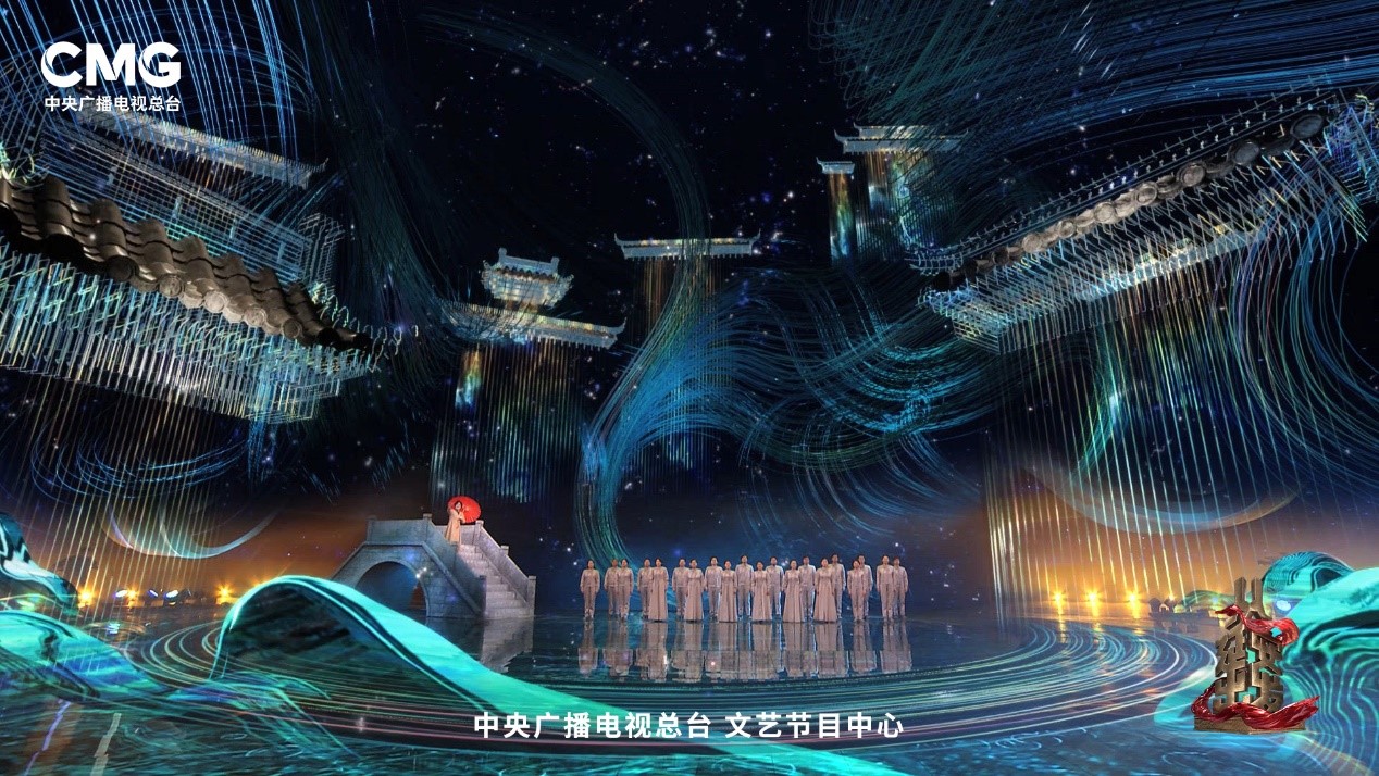《从延安出发》从“思想+艺术+技术”融合创新的思路出发,创作团队专门赴延安采风,以黄土高原沉淀的深厚文化,在舞台上再现延安革命岁月的宝塔山、杨家岭中央大礼堂等标志性建筑。同时,创作团队在实地走访多家博物馆、艺术馆,并访问多名美术和历史专家后,在舞台上打造“时光艺术馆”,布置了近百件艺术展品,并结合XR、AR虚拟现实等技术手段,让观众穿越时间长廊,沉浸式感受延安时期火热的文艺创作情景。