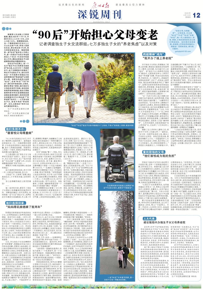 前不久,本报“深锐周刊”刊登了文章《“90后”开始担心父母变老》,引发了不少“80后”“90后”的共鸣。在这些年轻群体中,当同时面对子女教育和父母养老规划时,他们该如何实现两者间的“动态平衡”?