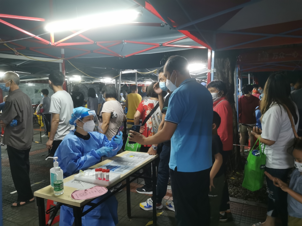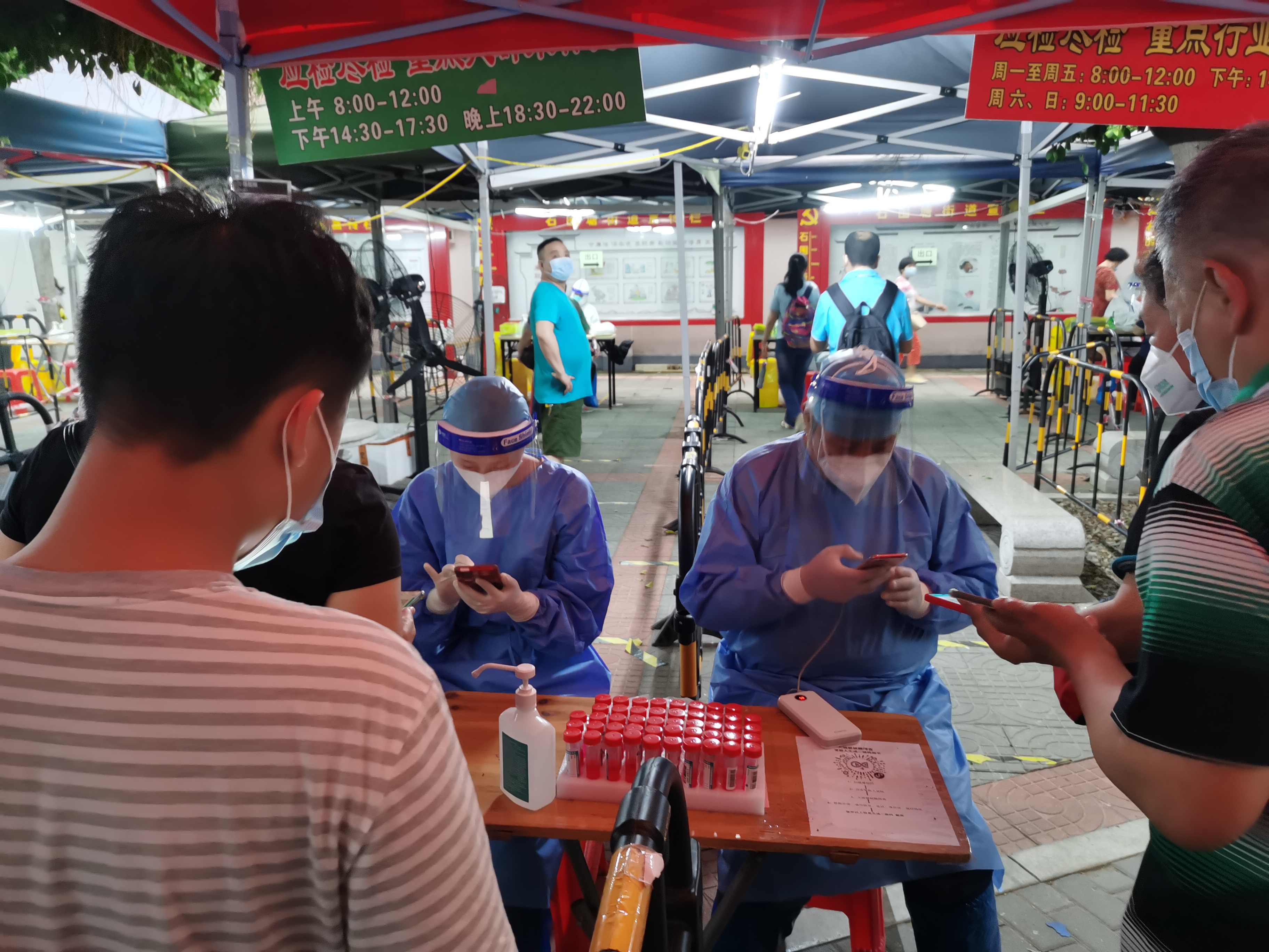 一天,听说石围塘晚上可能需要紧急启动全员核酸,在不确定开始时间的情况下,另一名志愿者王源,主动报名参加扫码。原本他已经报名第二天白天白云区的疫情支援志愿活动,他却依然坚持说可以通宵干到凌晨五点,休息一会再赶去白云区。