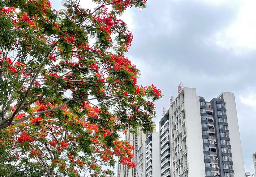 据悉,一般凤凰花在5月中下旬进入盛花期。由于今年的凤凰木开花情况很好,开花时间可能略微提早,喜欢赏花的街坊可以提早做好观赏安排了。