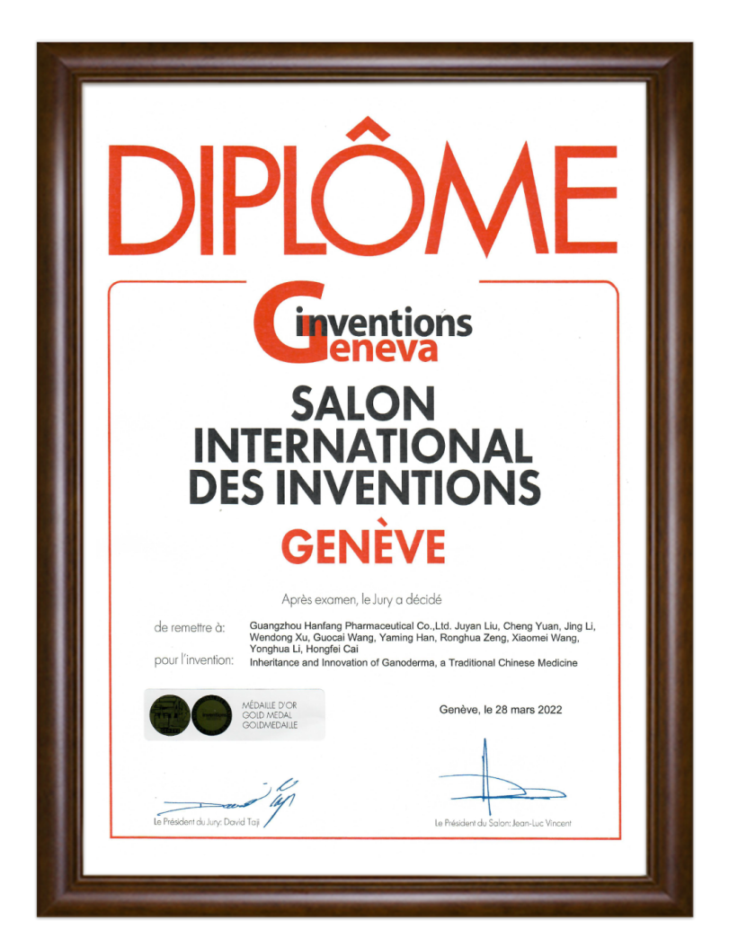 据了解,日内瓦国际发明展自1973年开办首届,是全球举办历史最长,规模最大的发明展之一,与匹兹堡发明展、纽伦堡发明展一起被称为世界三大发明展。2022年第49届日内瓦国际发明展因受疫情影响,采用了线上评审方式,吸引了来自中国、美国、德国等25个国家和地区的知名高校、科研机构、企业的约800项科技成果共同参展。今年不设特别嘉许金奖,获得金奖难度也较往年更高。在本次发明展中,白云山汉方通过激烈的比拼,成功斩获金奖,彰显了白云山汉方在中药灵芝研究领域的权威地位,同时该项目在全球范围的领先优势也得到了认可。
