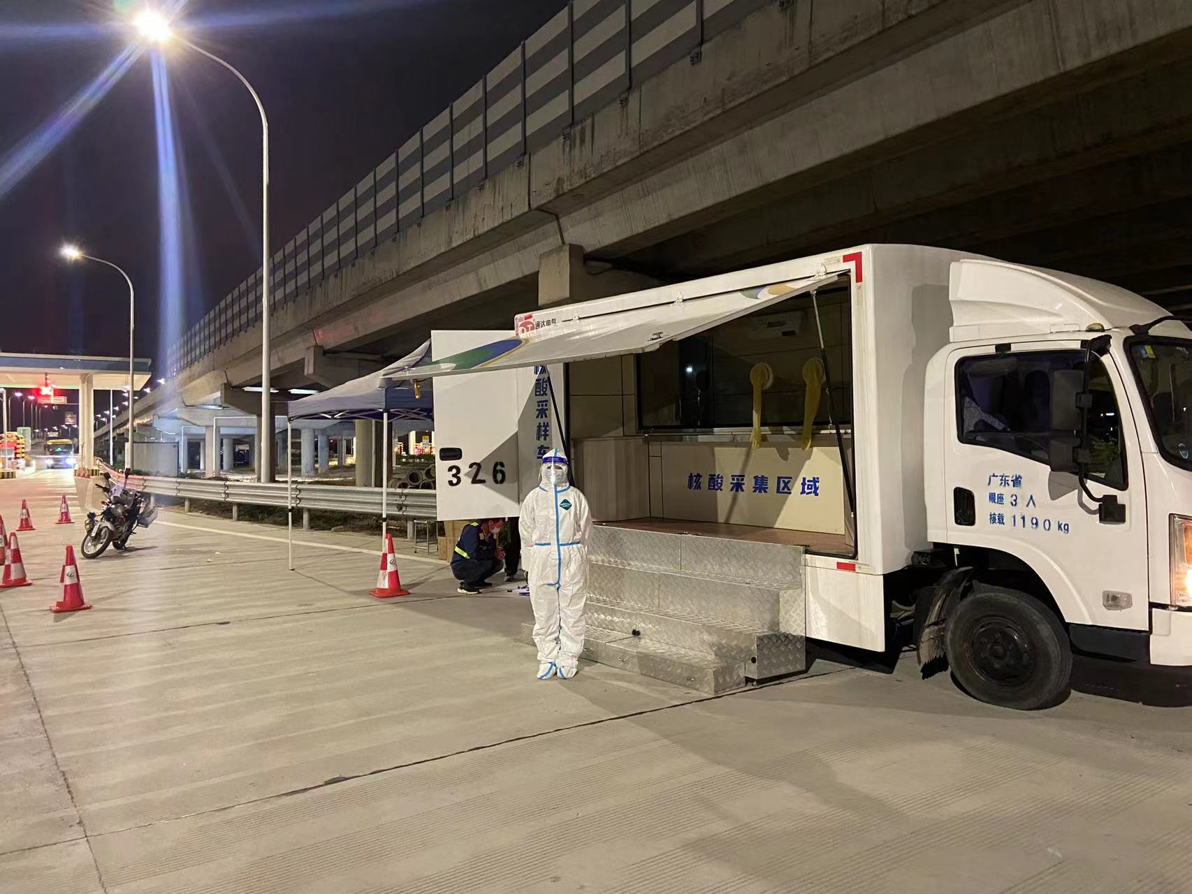 为方便人流量密集区域或场所的群众就近采样,白云区在产业园区、商业广场、高速路口等投放机动灵活的采样车,深入社区“零距离”为群众采样。采样全过程仅需2分钟,每台采样车日采样能力可达1000人次以上,根据轮动采样要求为群众提供出门就检的便捷服务。