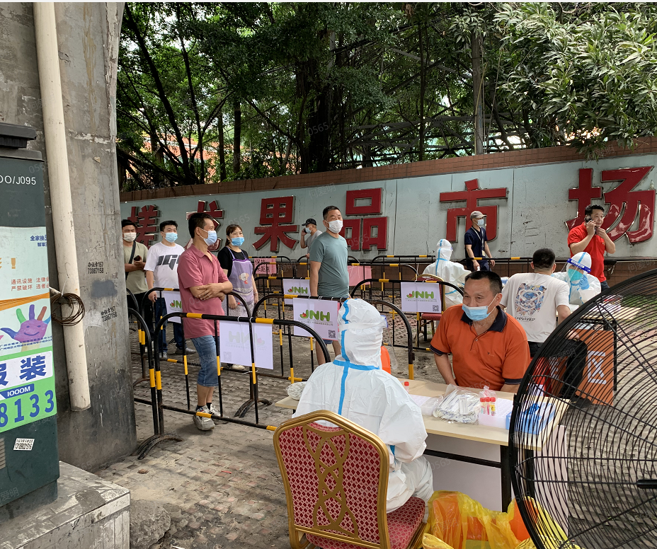 据了解,白云区在重点区域和重点行业、重点人群聚集地设置常态化固定采样点,提高早发现能力。根据疫情防控工作需求,在物流园、货运市场、专业批发市场设置常态化采样点,方便货车司机和物流人员就近采样。