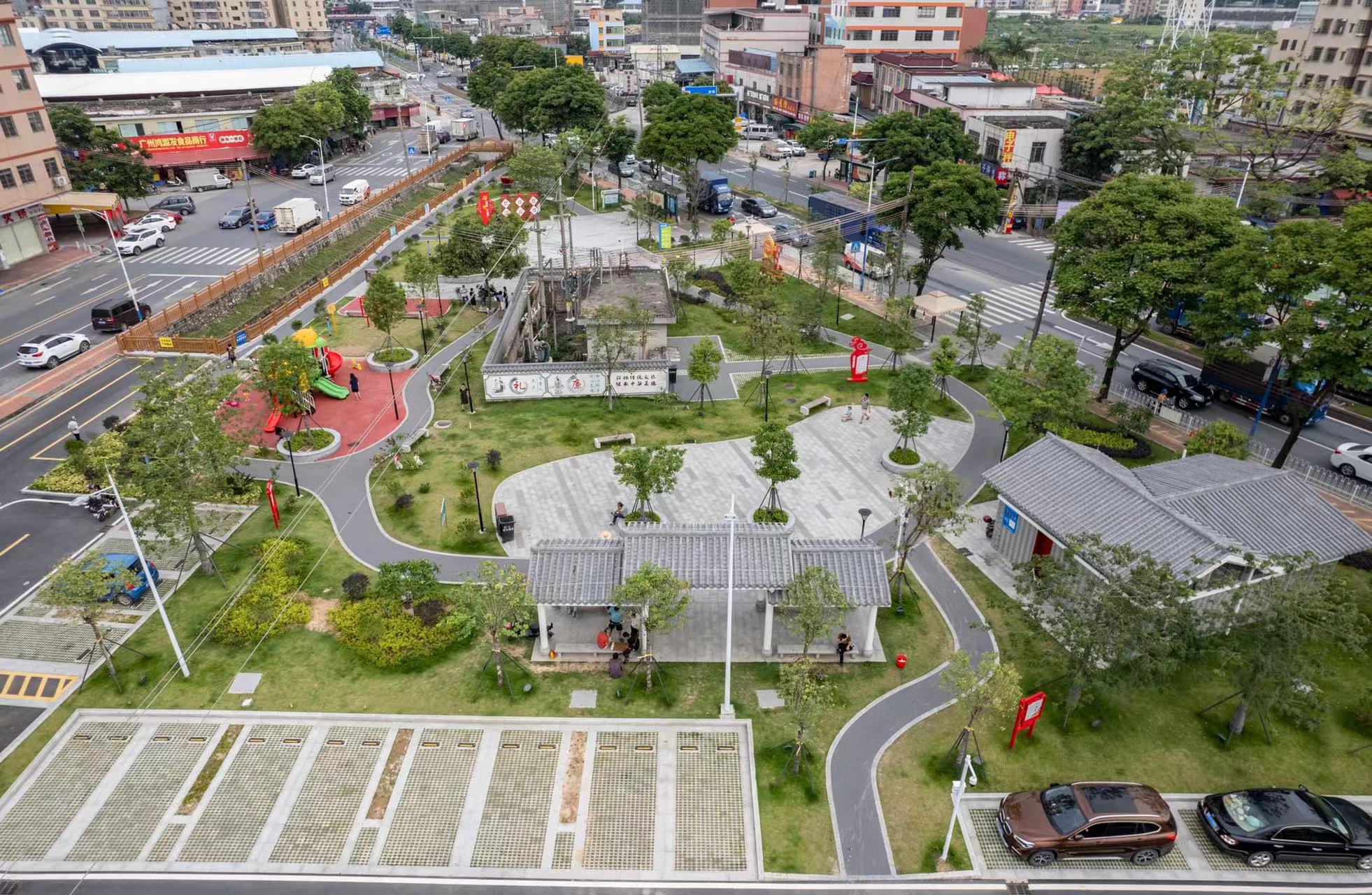 穿过车水马龙的街道,步入营溪公园,城市喧嚣便隔绝于身后,坐下小歇,在熙攘的都市里享受一片安逸和宁静。营溪公园位于白云区太和镇太营路和大沥路的夹角位置,正对着营溪村牌坊,占地面积约7600平方米,是一处从荒废之地向精致“口袋公园”的华丽转身。