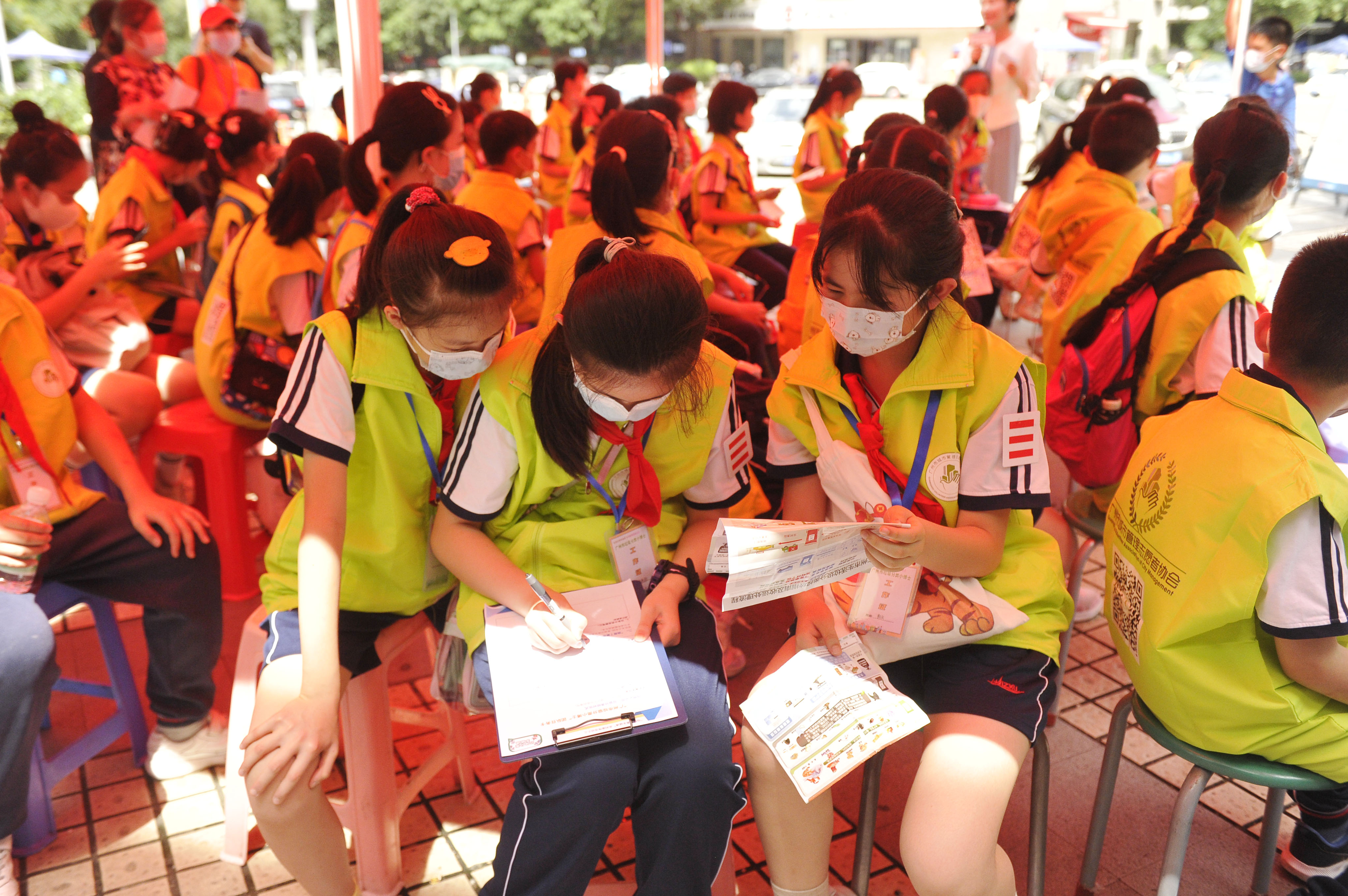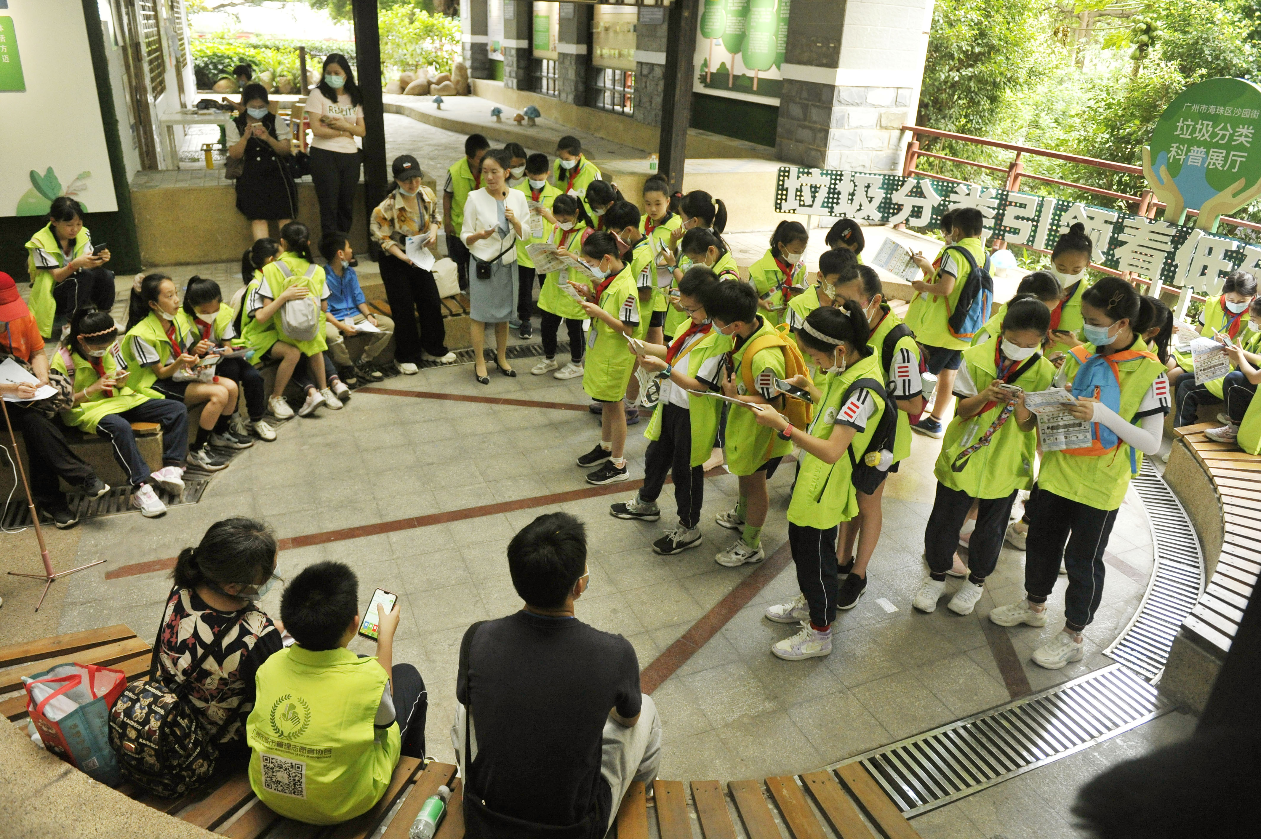 当天,来自宝玉直实验小学(光大校区)的学生作为学员积极参与到公益活动中。他们现场结对分成5组,并为各自小组取了响亮的队名,喊出“垃圾分类 人人有责”“垃圾分类 守护羊城”等宣传口号。
