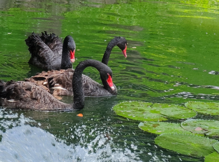 湖水变清了,生态也变活了。公园陆续放养黑天鹅、鸿雁、绿头鸭和蓝孔雀,打造鸟类栖息的乐园,形成飞禽欢鸣的灵动景观,市民游客泛舟湖上,一派水清、景美、民乐的景象。