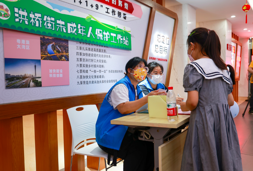 该服务站主要开展两方面工作,一是在洪桥街未保站设置心理专家志愿者坐席,专业化守护未成年人的心理健康;二是开通心声热心(020-33970809),由社区儿童主任通过热线收集辖内儿童的困难、需求,之后联系专业志愿者,有针对性地为儿童开展帮扶服务。广州市志愿者协会副秘书长刘茜介绍,这是广州市开通的首条街道未成年人心声热线。