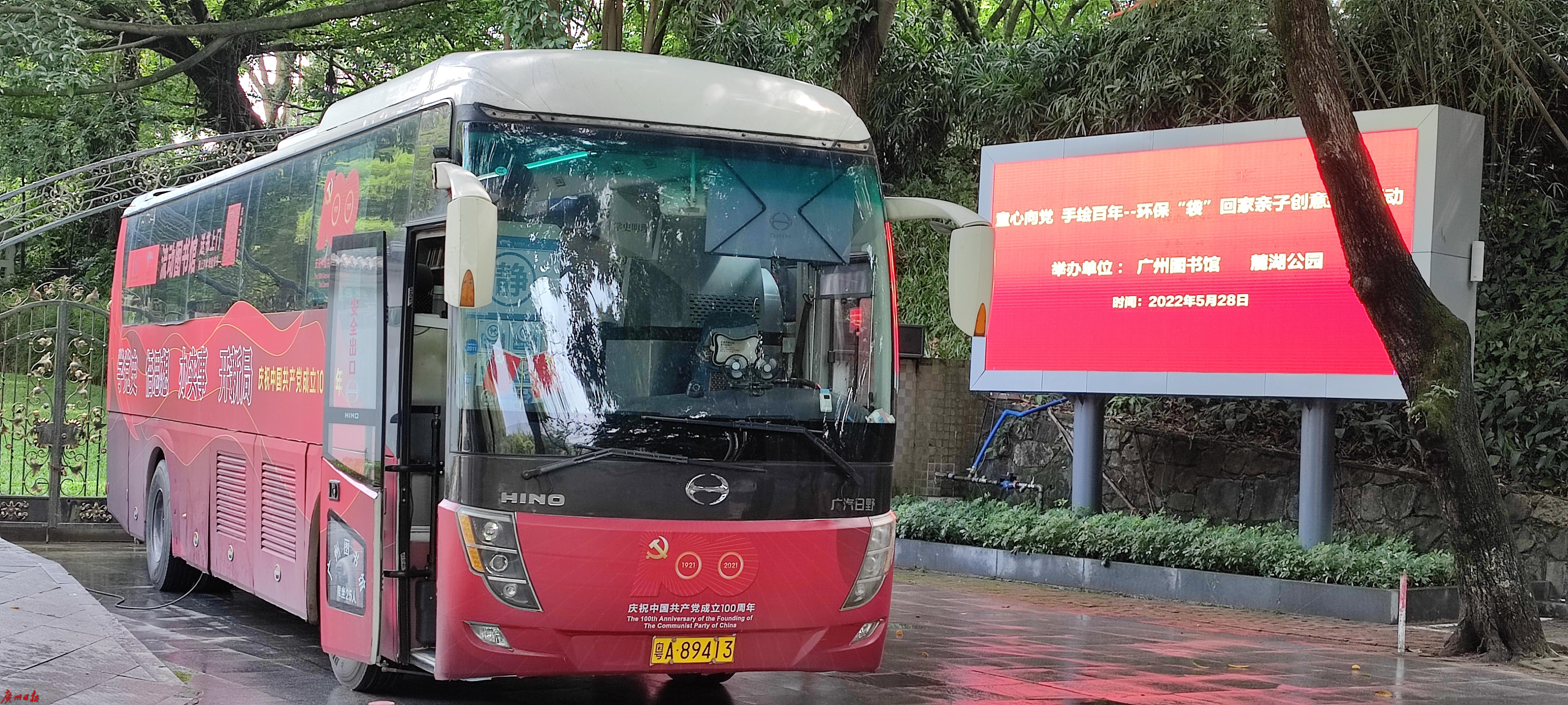 5月28日上午10时,一辆红色大巴缓缓驶入麓湖公园的聚芳园,这座从广州图书馆驶出的流动图书馆将为游玩麓湖公园的市民游客定期提供便捷的红色经典书籍免费借阅服务。