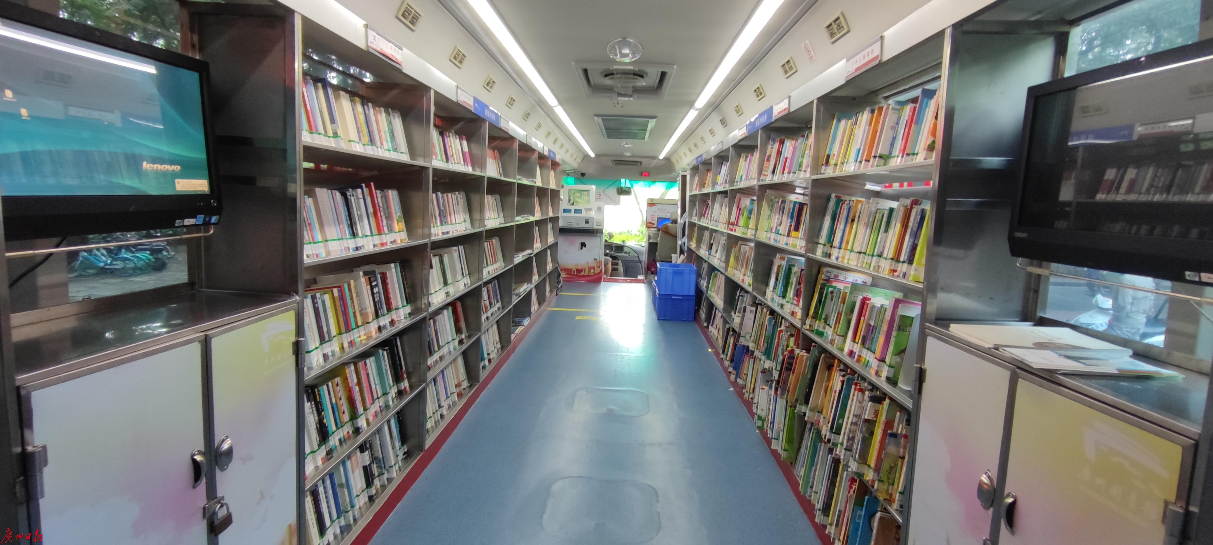 大巴上的智能借阅设备能提供免费办证、自助服务、通借通还、数字资源等全套读者服务,除了不具备阅读场地外,它基本能满足居民借阅图书时的所有需求。用于装载书册的大巴车由内至外均进行了专门设计,车内的读本专架上放置了500册红色经典读本供读者挑选。此外,车内的电子显示屏也将在开放时间内循环播放红色微纪录片。