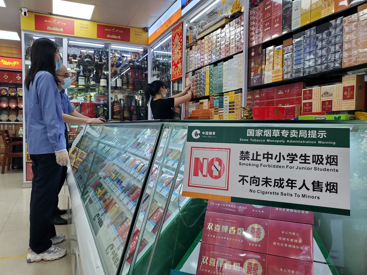 我国《未成年人保护法》规定,烟、酒和彩票经营者应当在显著位置设置不向未成年人销售烟、酒或者彩票的标志。今年以来,天河区烟草专卖局协同区检察院、区市场监管局、区教育局、区民政局联合签订了《广州市天河区校园周边社会治理工作方案》,加强对校园周边治理工作,严厉打击学校周边违法经营烟酒、假冒伪劣食品等行为,并在日常实地检查中清查标志张贴不规范行为,保护未成年人远离烟草侵害。