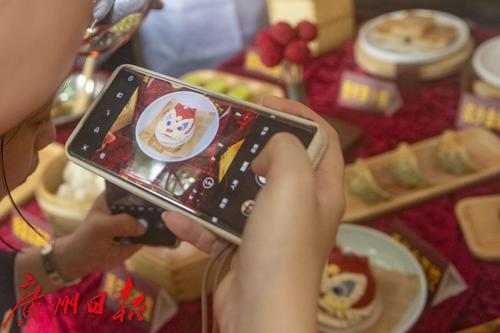 参与活动的嘉宾在拍摄粤式点心。