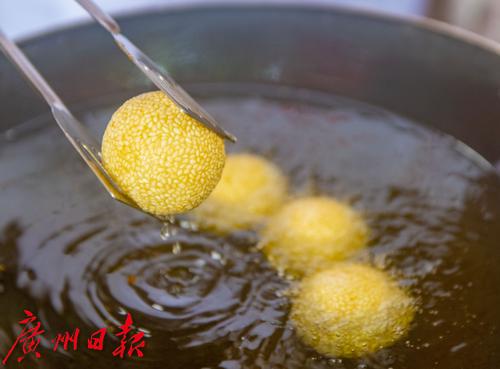 粤菜师傅现场展示炸煎堆。