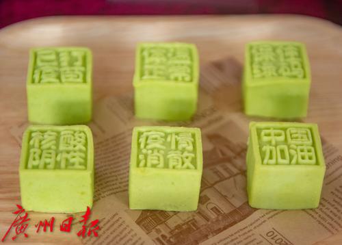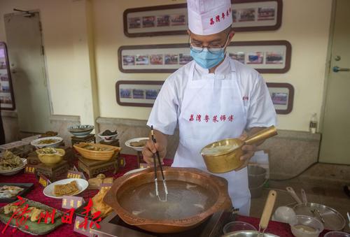 荔湾粤菜师傅展示地方小吃水菱角的制作方法。