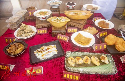 现在展示的荔湾地道美食,各种粤式点心小吃琳琅满目。