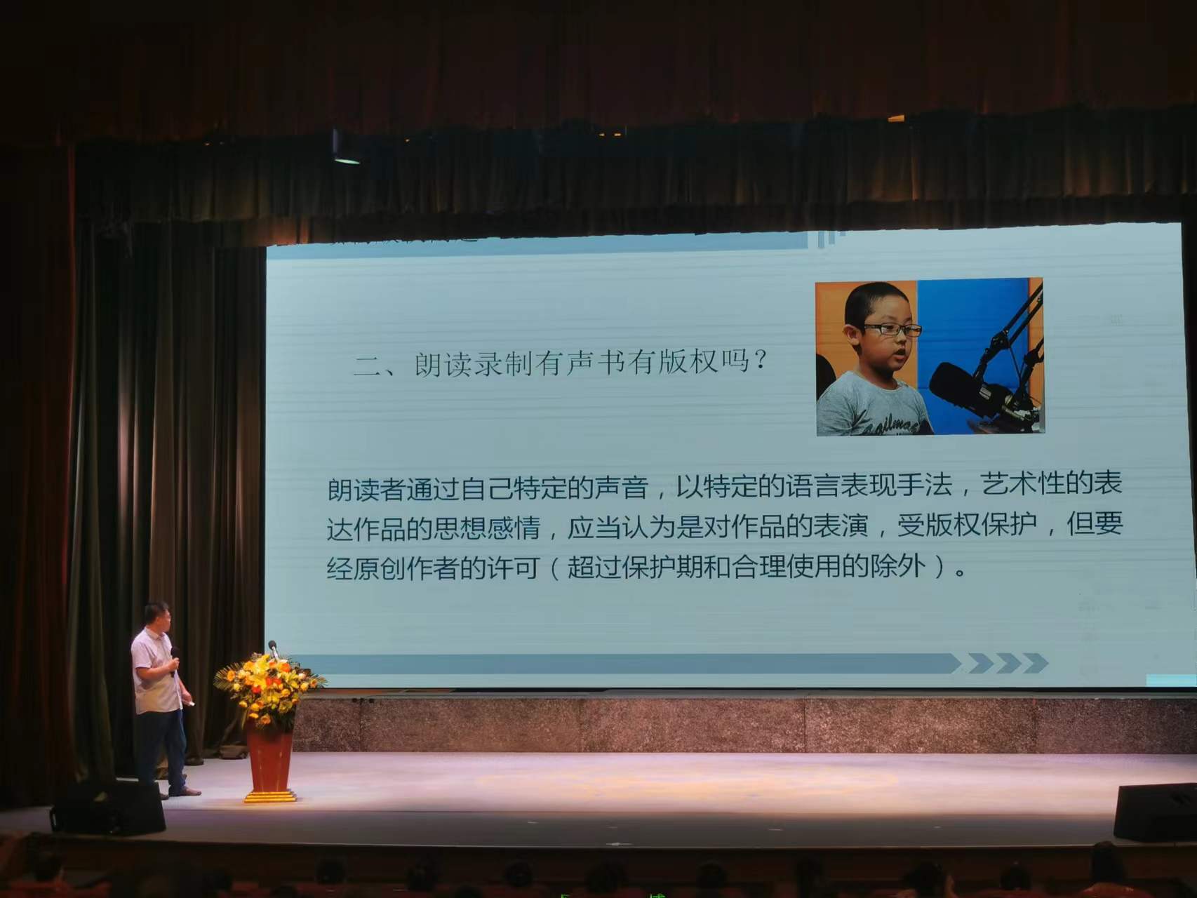广东省版权联合保护会秘书处主任张健龙现场开讲,将有声阅读的诞生过程一一展示,让与会人士在实际参与中体验知识版权的重要性。