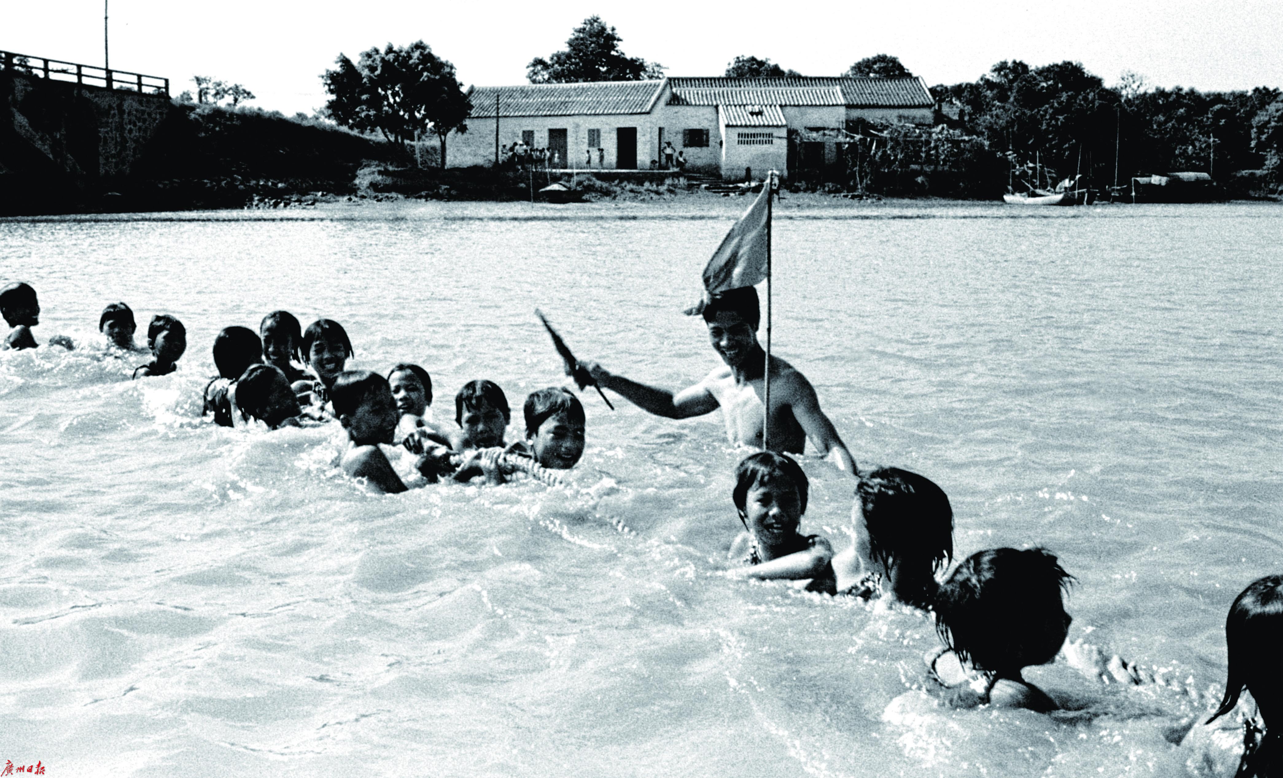 1979年,土华村小学组织学生到珠江支流河涌开展各种有益水上活动。(拍摄者:杨对荣)