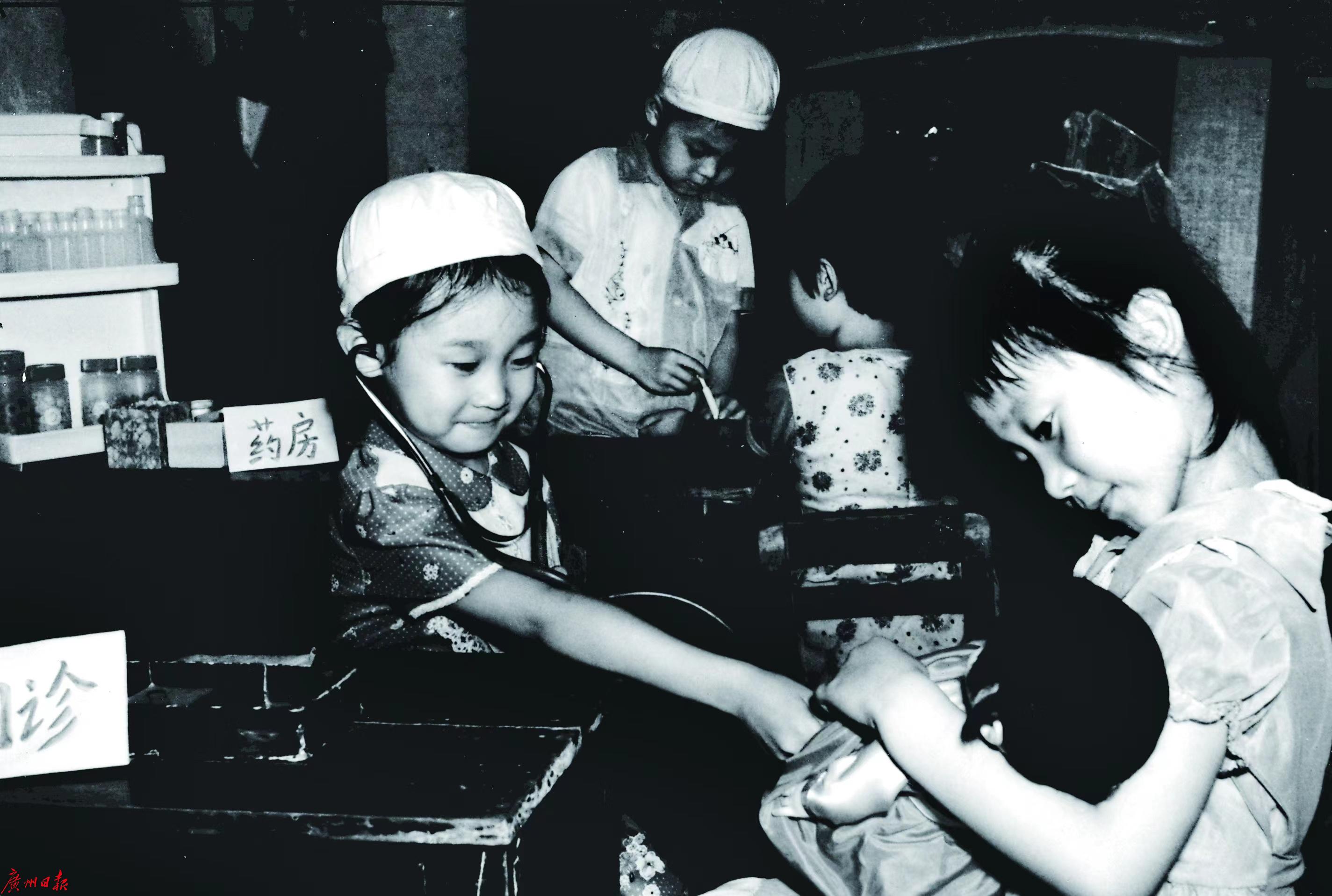 1981年,土华村幼儿园开展各种有益儿童身心健康的趣味活动。(拍摄者:杨对荣)