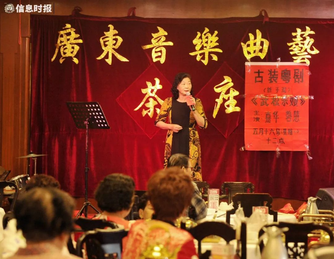 “荣华粤韵粤剧团”每日13时起开唱。荣华楼的舞台欢迎所有的粤剧发烧友上台试唱,只需缴纳基本的费用,按照每分钟4.5元计算,可以是一人独唱,也可以是双人合演。