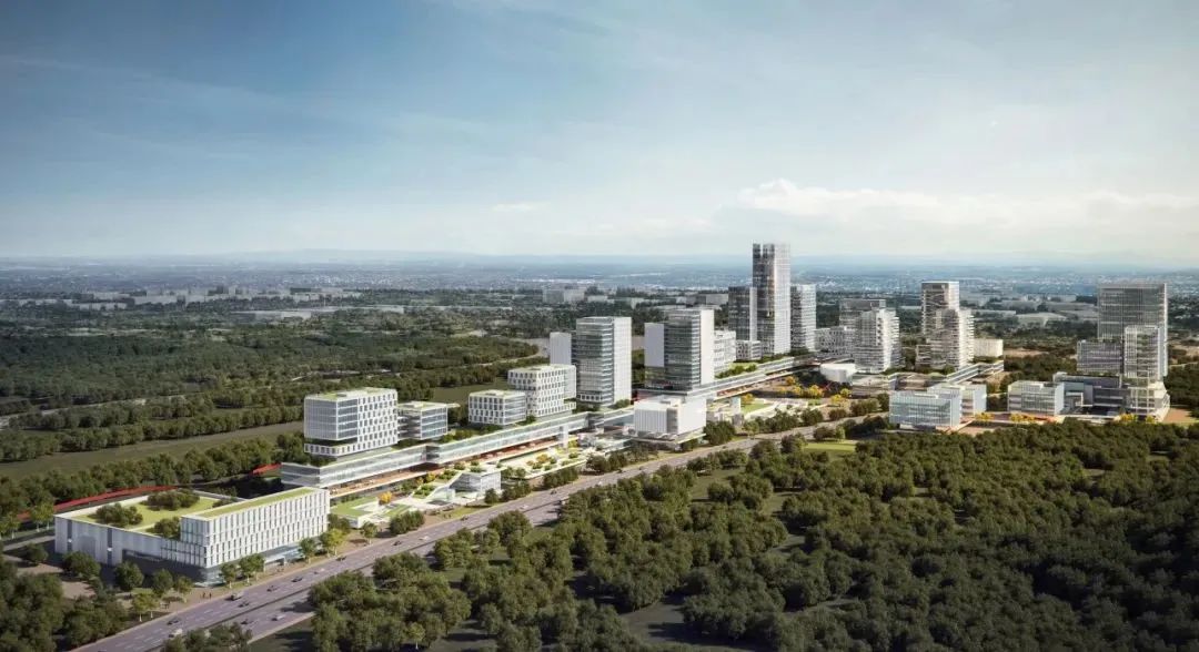 地铁13号线双岗站TOD智航中央商务区效果图。